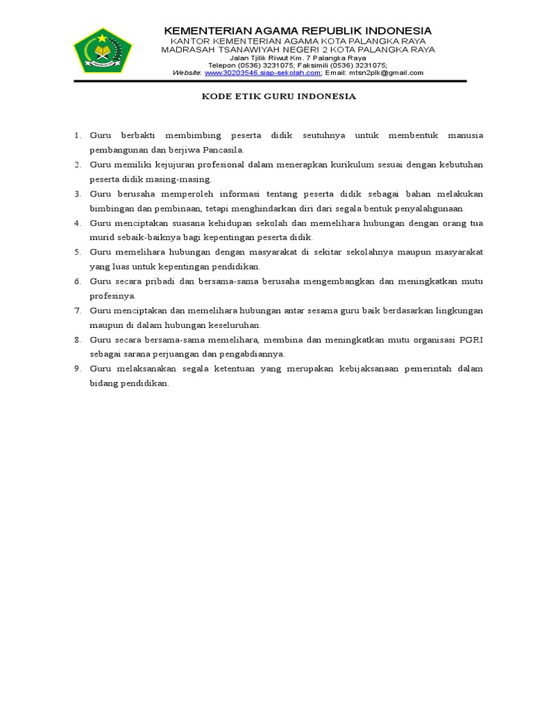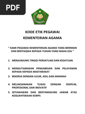 1 Kode Etik Guru Indonesia Doc from imgv2-2-f.scribdassets.com Keputusan menteri agama nomor 421 tahun 2001 tentang kode etik pegawai departemen agama sudah tidak sesuai lagi dengan perkembangan hukum dan kebutuhan organisasi. Pelanggaran kode etik aparat kepolisian meningkat 7 persen pada 2019. Dengan adanya kode etik akan melindungi perbuatan dari yang tidak. Kode etik pegawai kementerian agama kami pegawai kementerian agama yang beriman dan bertaqwa kepada tuhan yang maya esa : Kode etik, kata lukman, akan menjadi pegangan bagi para mubaligh dalam menyampaikan materi dakwah. (kode etik jurnalistik ditetapkan dewan pers melalui peraturan dewan pers nomor: Pedoman penyusunan dan penetapan kode etik pns tercantum dalam peraturan menteri. Gema kode etik kementerian agama | kemenag sijunjung.